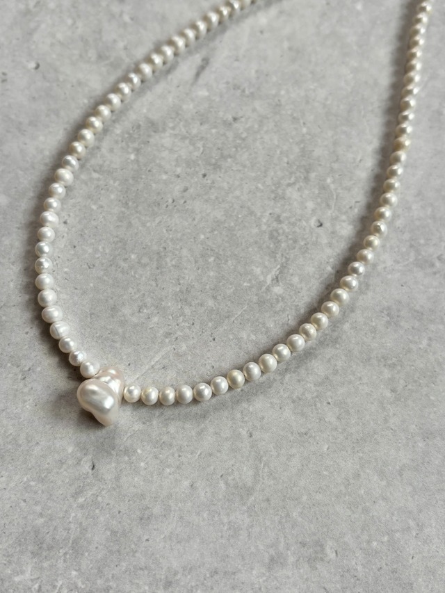 小粒のパールの中に、変わり型のパールがほんのりアクセントとなるネックレス。 シンプルなデザインながらも、気品漂う一品で、カジュアルな装いから特別なシーンまで幅広くご活用いただけます。 素材: ◾︎パール…淡水パール ◾︎金具…ステンレス