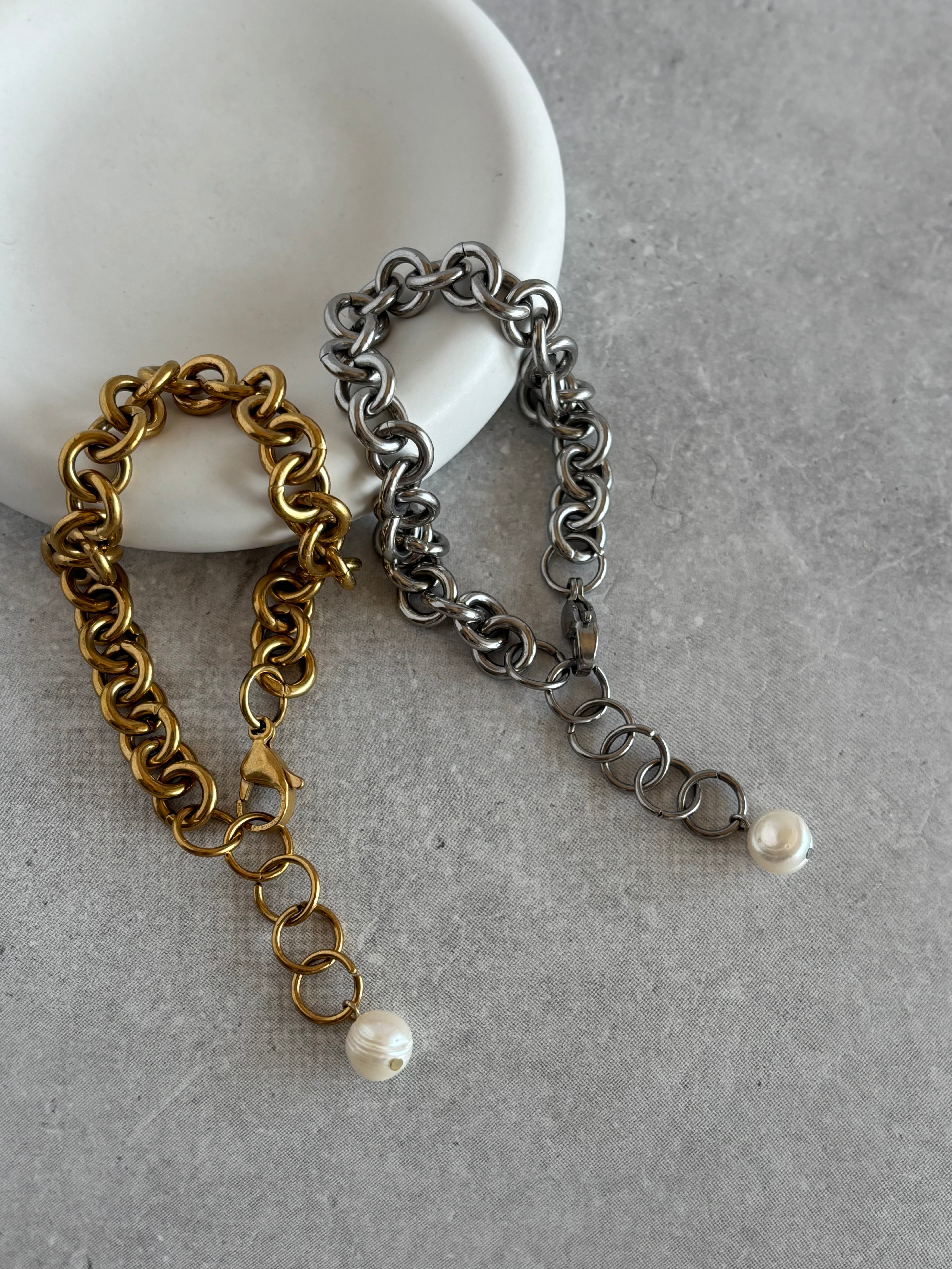 存在感をしっかりとアピールしつつも、上品さを持ち合わせているため、どんなシーンにもぴったり。パールのアクセントが、シンプルなコーディネートを華やかに演出します。