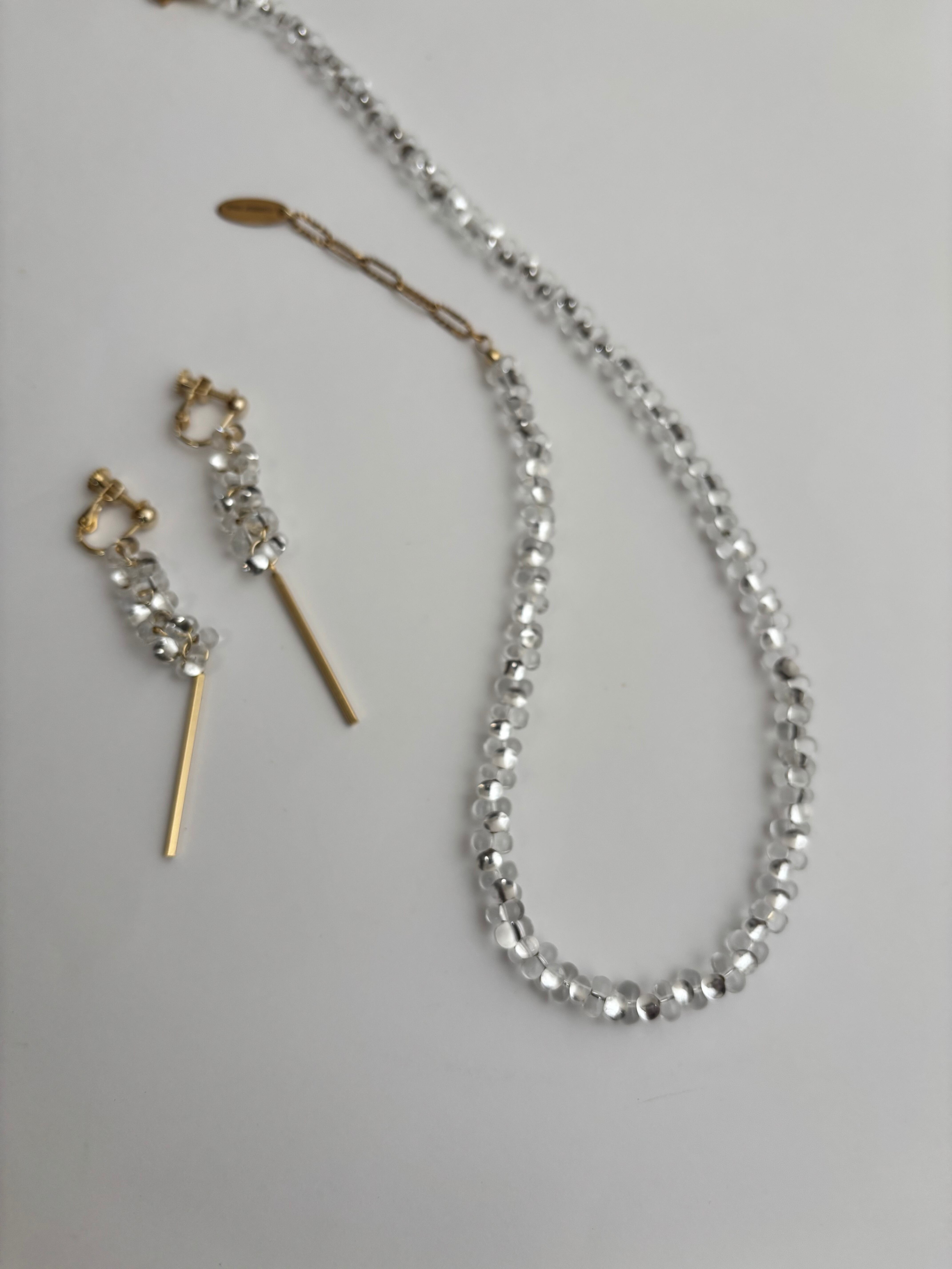 ファルファーレビーズを使ったクリアで涼し気なアイテムです。