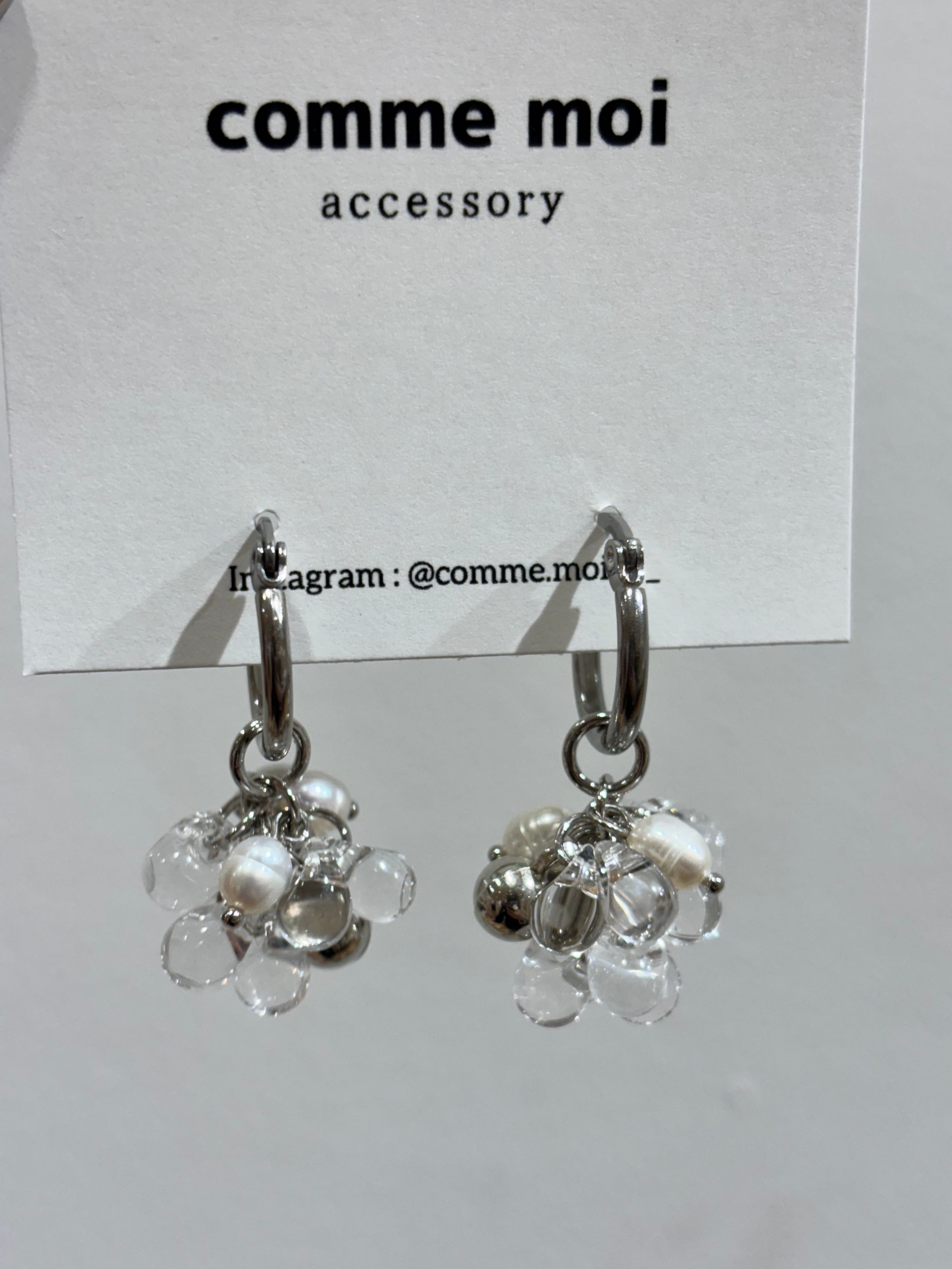 クリアのドロップビーズとさりげなく添えられたパールが素敵なアイテム。