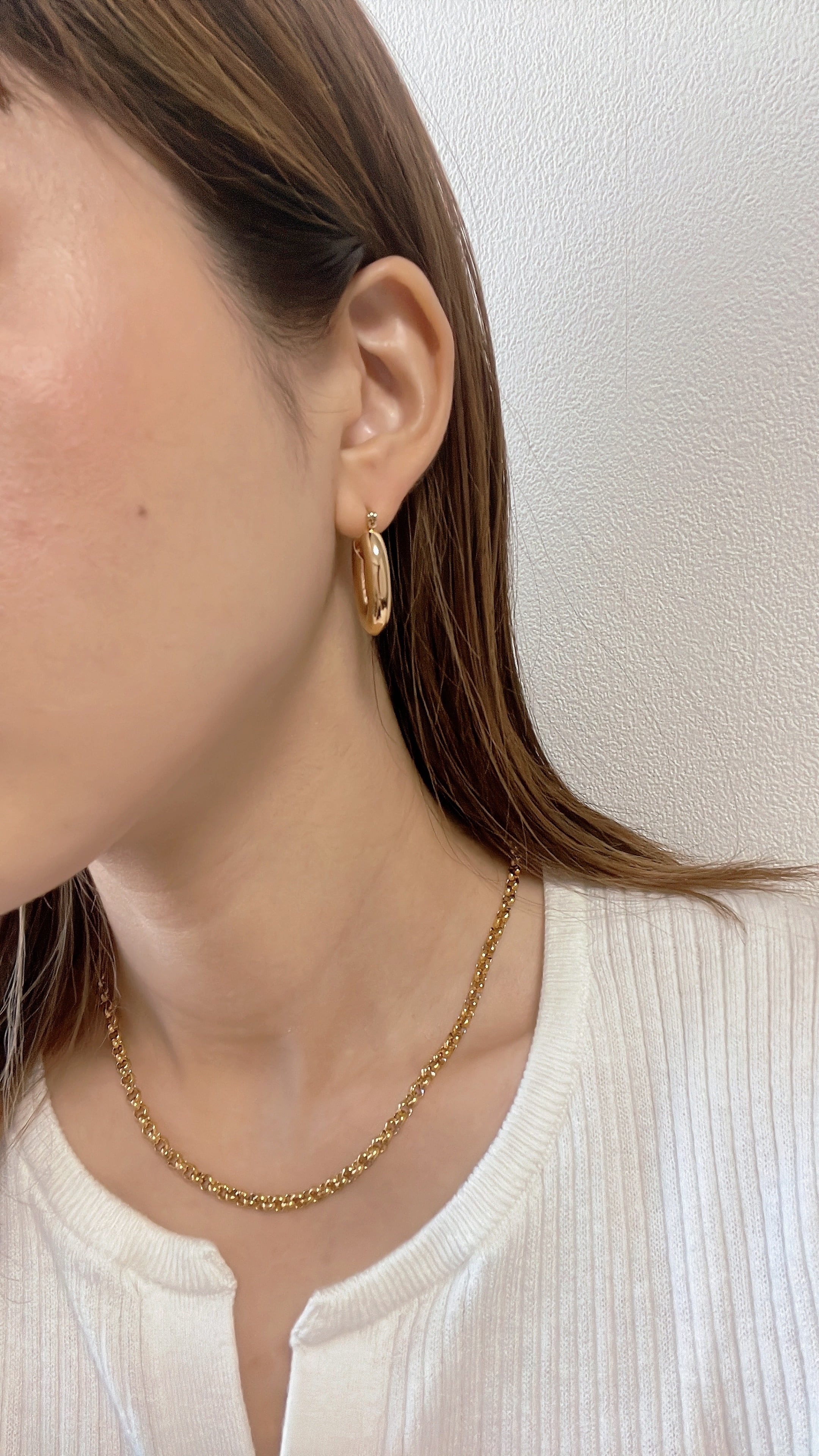 オーバルチェーンにゴールドのステンレスビーズと小さな淡水パールが可愛い♡
