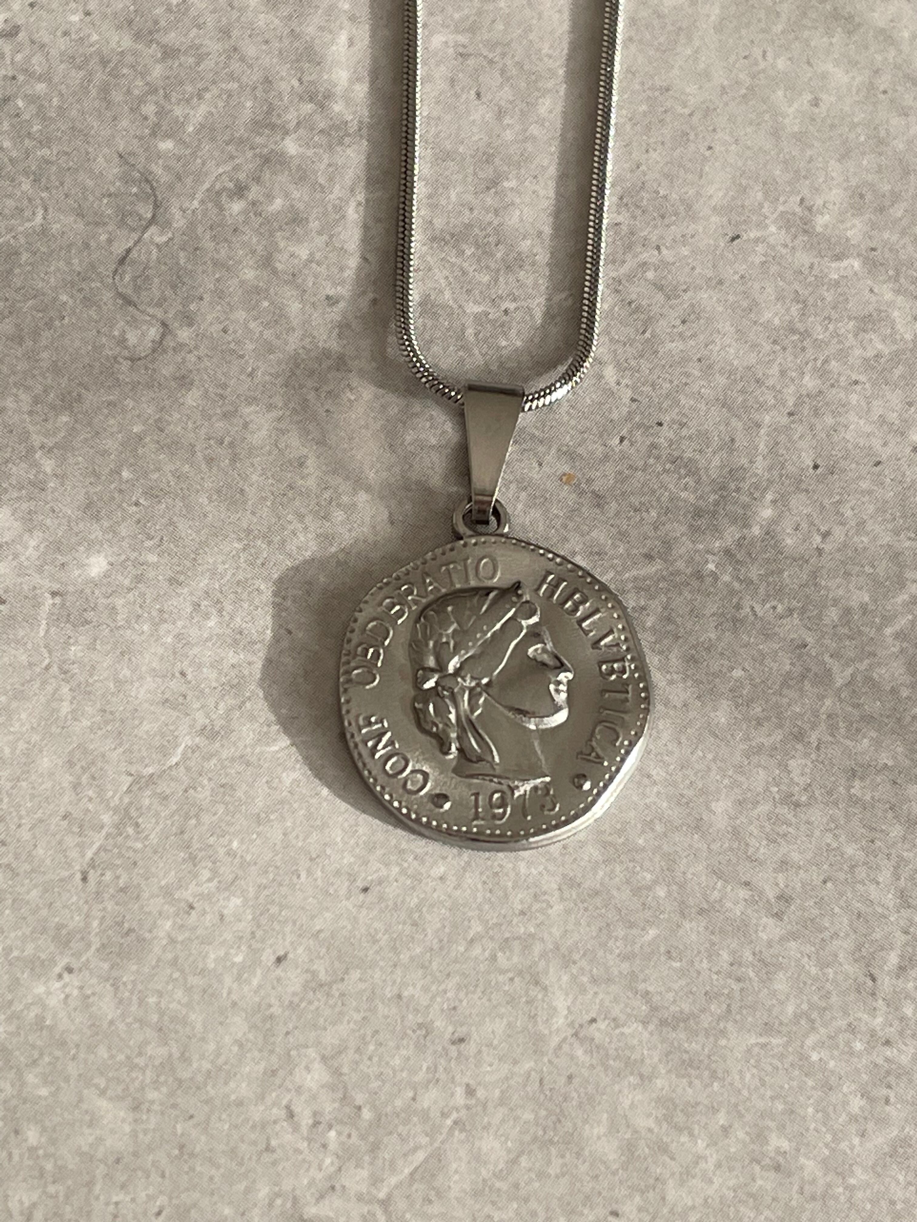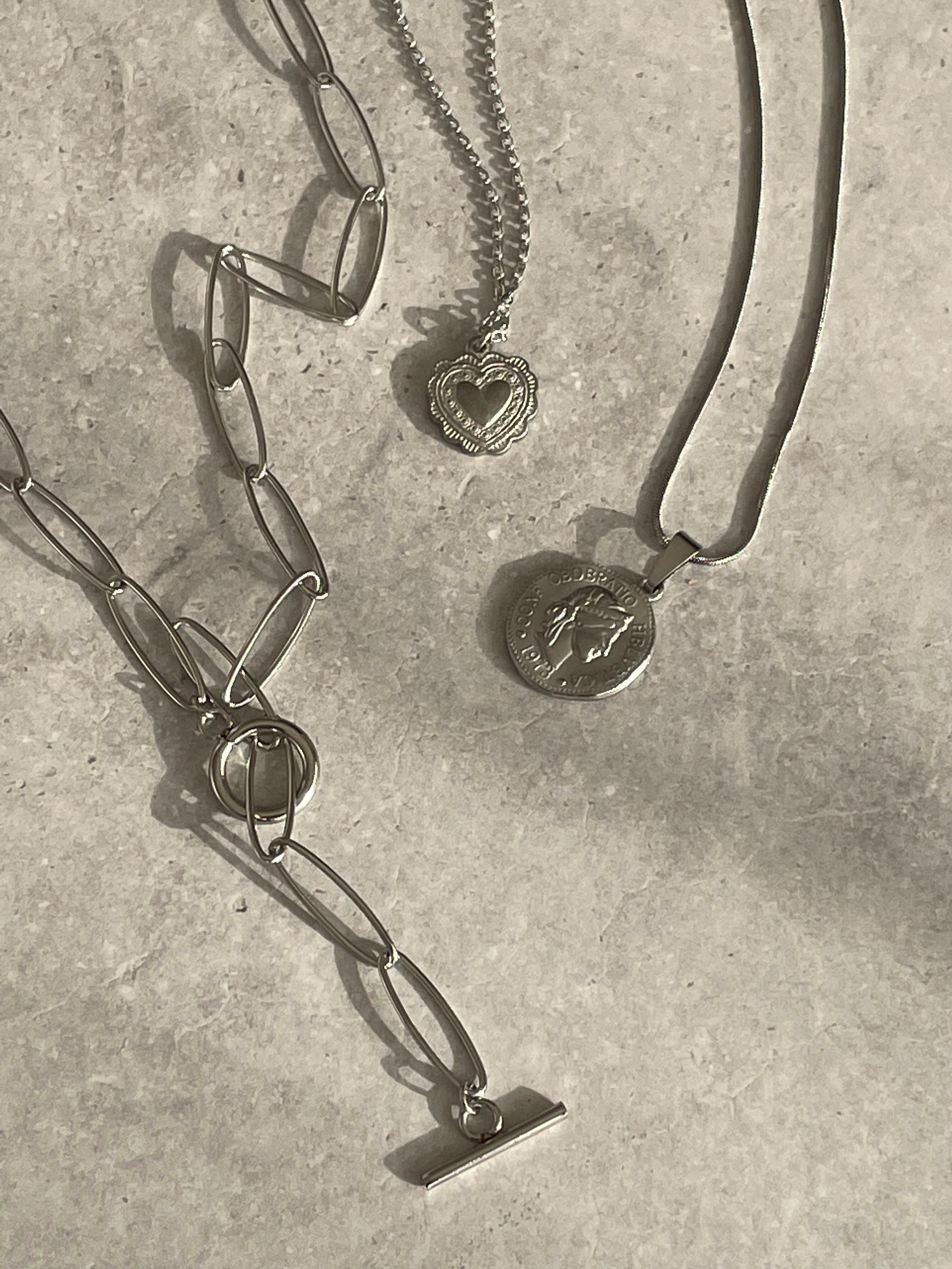 ステンレスパーツのコインネックレスは、ひとつでシンプルに、ロングネックレスやパールアイテムとも相性抜群です!!